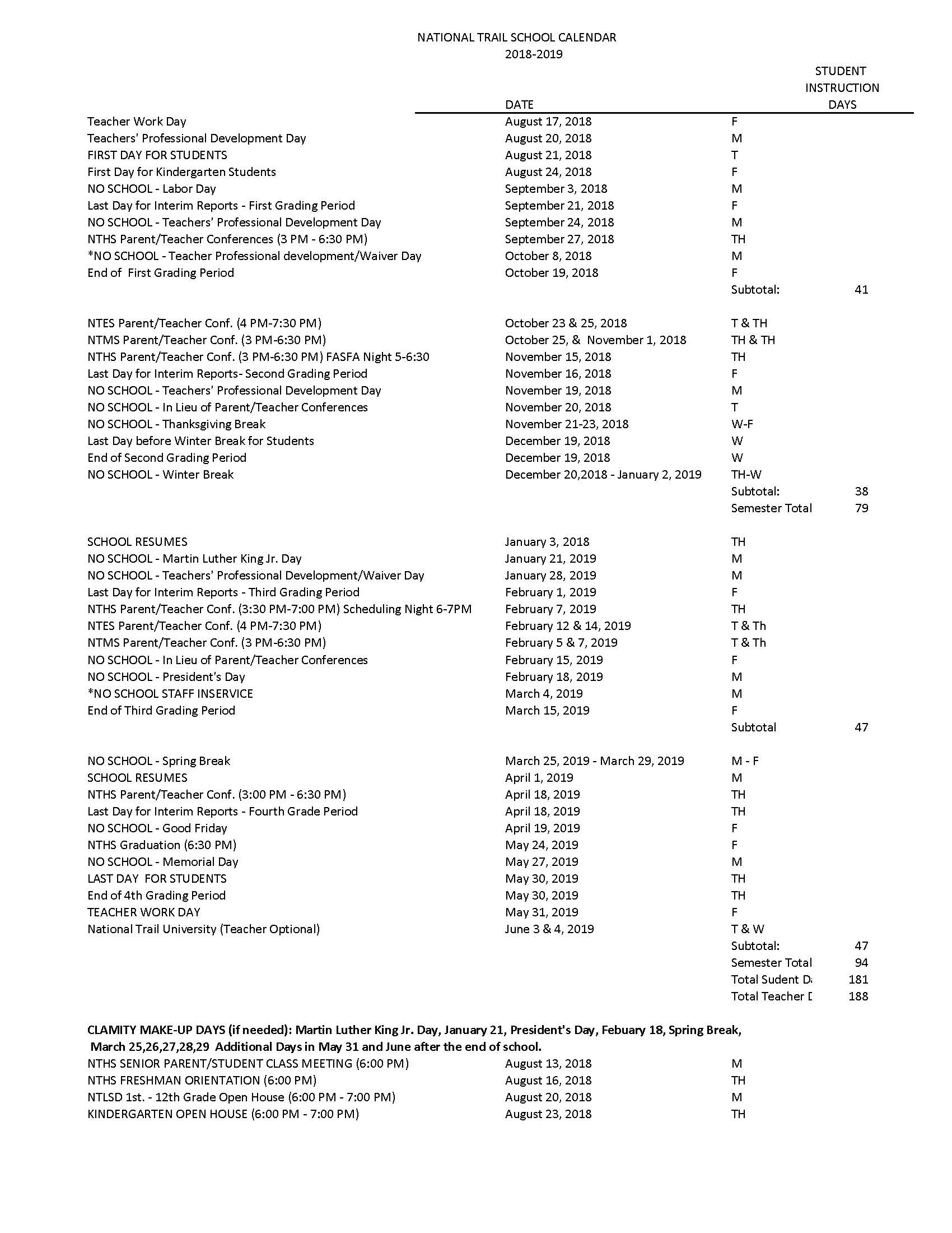2018-19 School Calendar